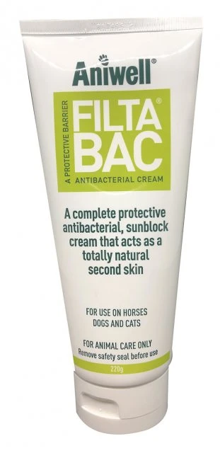Gives ultra protection from sunburn for horses, dogs and cats and heat-lamp burn in exotics. It covers wounds on horses, dogs and exotics like a second skin, providing a barrier which simulates the properties of undamaged skin and is a total sunblock protecting the wound from any further damage by the sun.