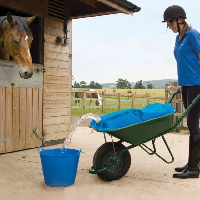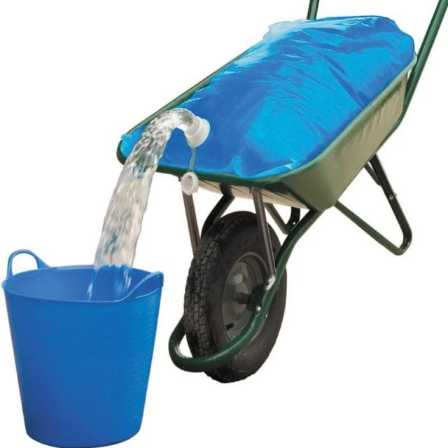 A problem solver for the equestrian market! A way of transporting up to 80 litres of water in a wheel barrow where there is no hosepipe available. Designed with a fitted spout making it easy to pour and a cap which is permanently attached. Comes with a non slip mat to place in the bottom of the wheel barrow.