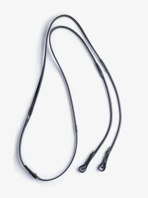 Round stitched reins with supergrip. The buckles are turned inwards. Can also be adjusted to a double bridle.