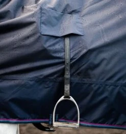 This lightweight, breathable waterproof rug protects your horse and tack from the elements with top to tail coverage. Featuring an integrated neck cover that attaches neatly to your headpiece via a secure Velcro strap, the rug includes dual Velcro straps on the underside of the neck cover for an adjustable fit. Paying attention to careful seam positioning throughout for a comfortable ride, the single front closure, reinforced stirrup holes, and belly strap allow for a secure fit.