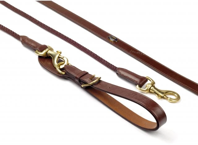 Quality leather draw reins with strong rope insert and brass hardware.